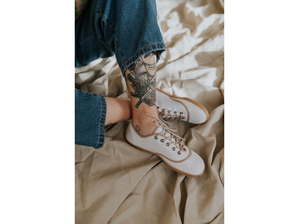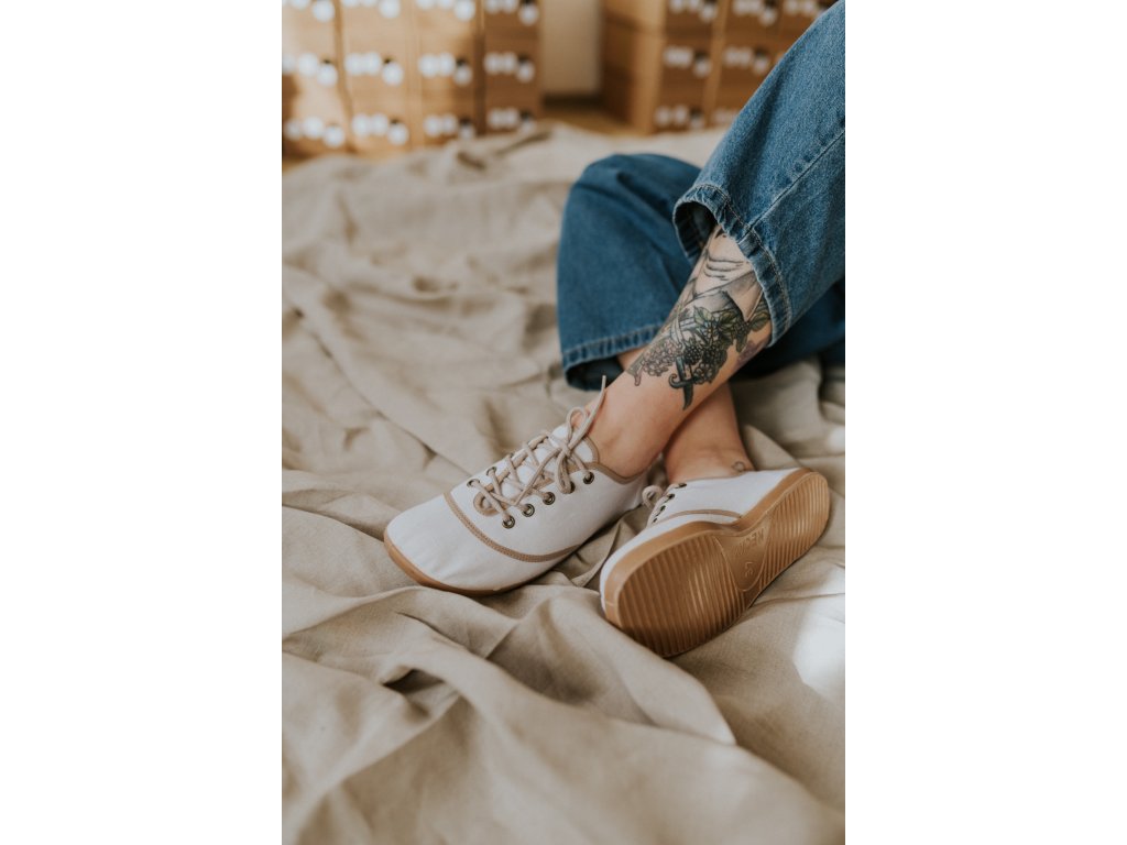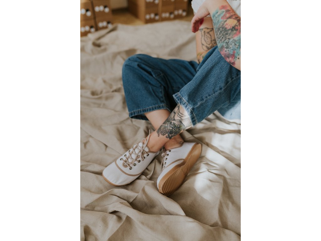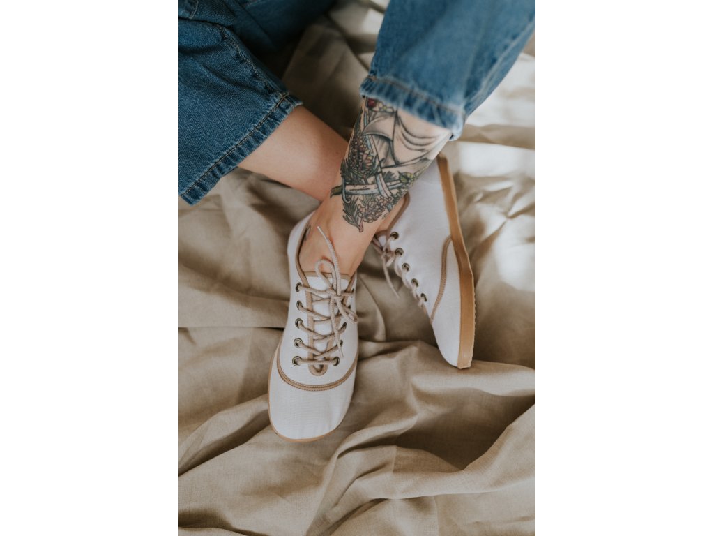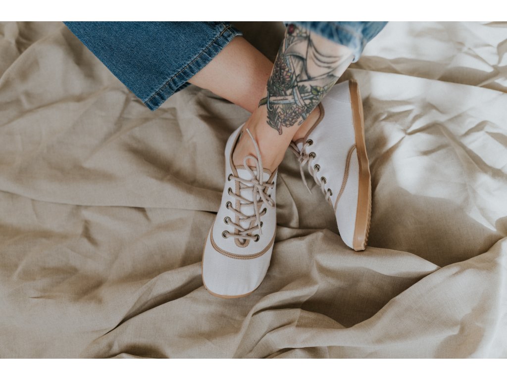 Jsou ušité z přírodního lnu, který je lehký, prodyšný a přirozený na nošení. Barefoot střih nechává nohám volnost a respektuje jejich tvar – bez tlaku, bez kompromisů.