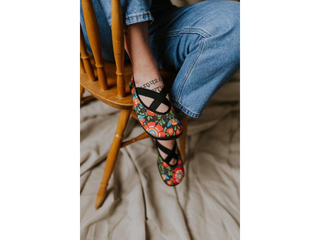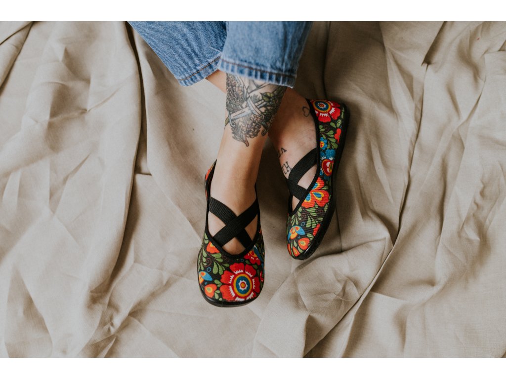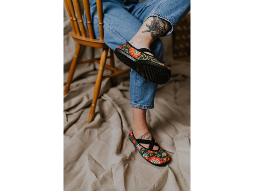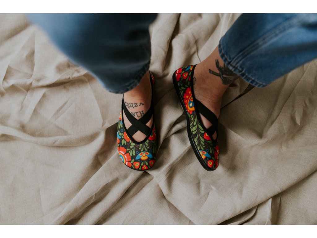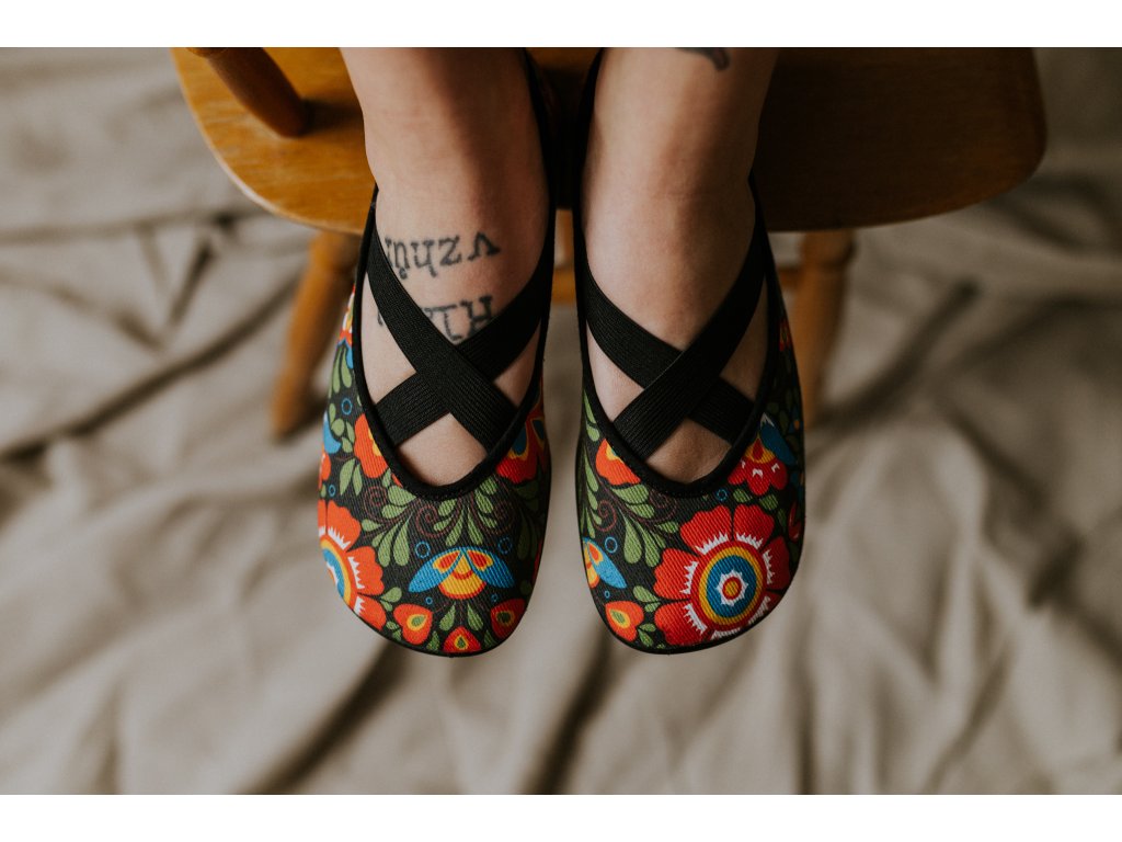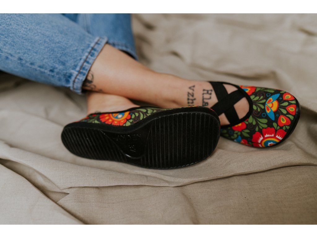 Folklorní motiv v moderním barefoot provedení.