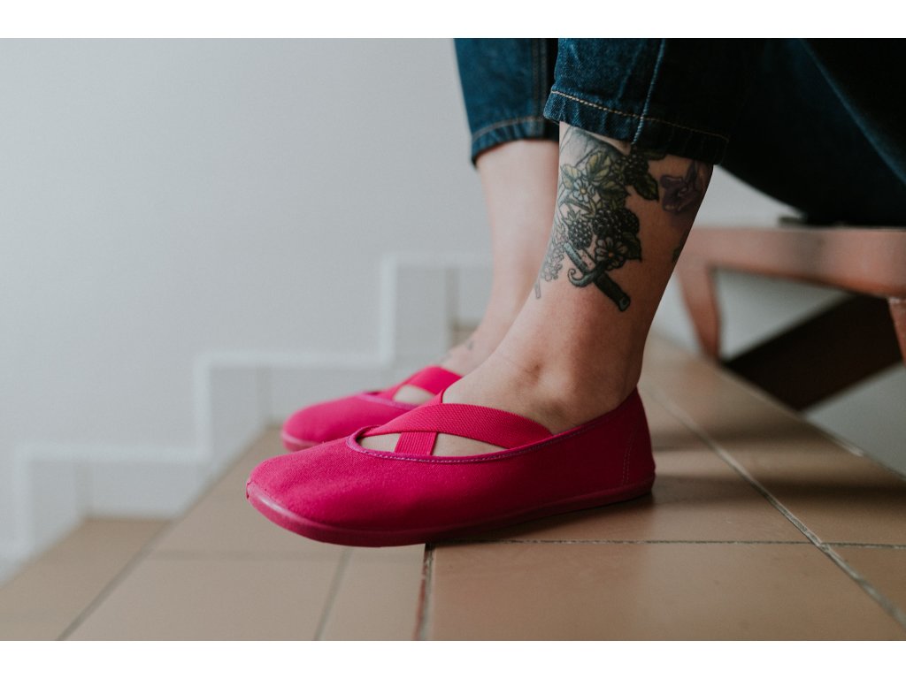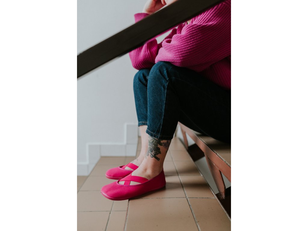 Celé v magentové barvě, barefoot pohodlí a poctivá výroba bez lepidla.