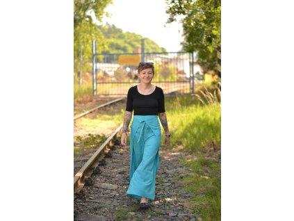 Viskóza/Len zavinovací kalhoty Tyrkysové