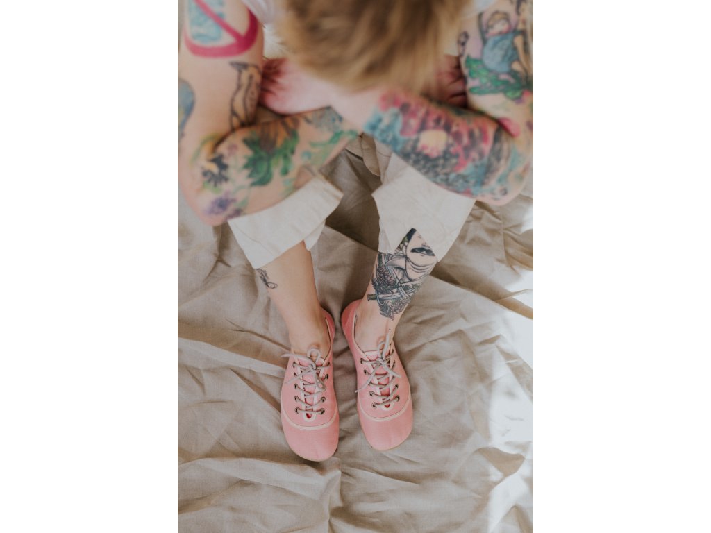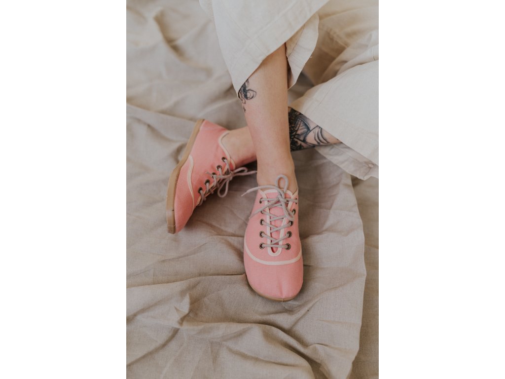 Lososově růžové lněné kecky, které v sobě nesou teplo, energii a lehkou drzost.
